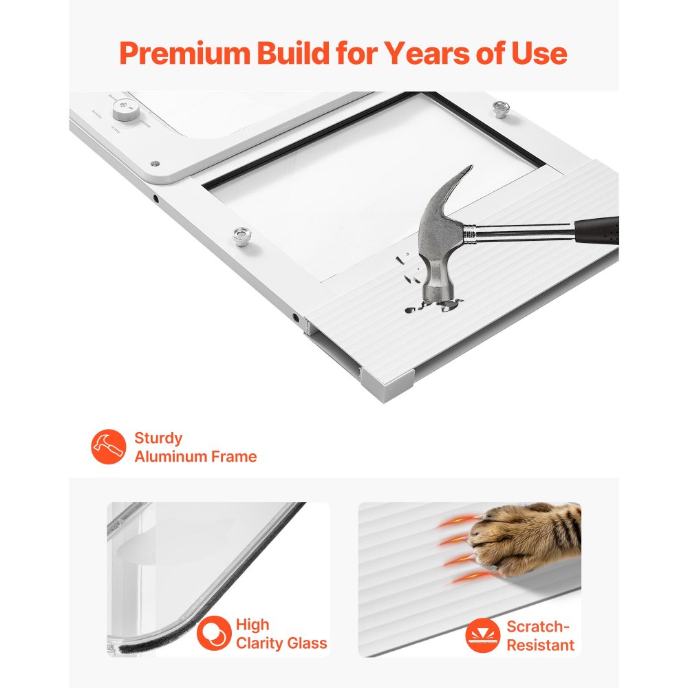 Marco de aleación de aluminio de primera calidad: Fabricada con un marco de aleación de aluminio resistente y una solapa transparente resistente a los arañazos, esta puerta para mascotas con ventana para gatos resiste el uso diario y las curiosas aventuras de su gato