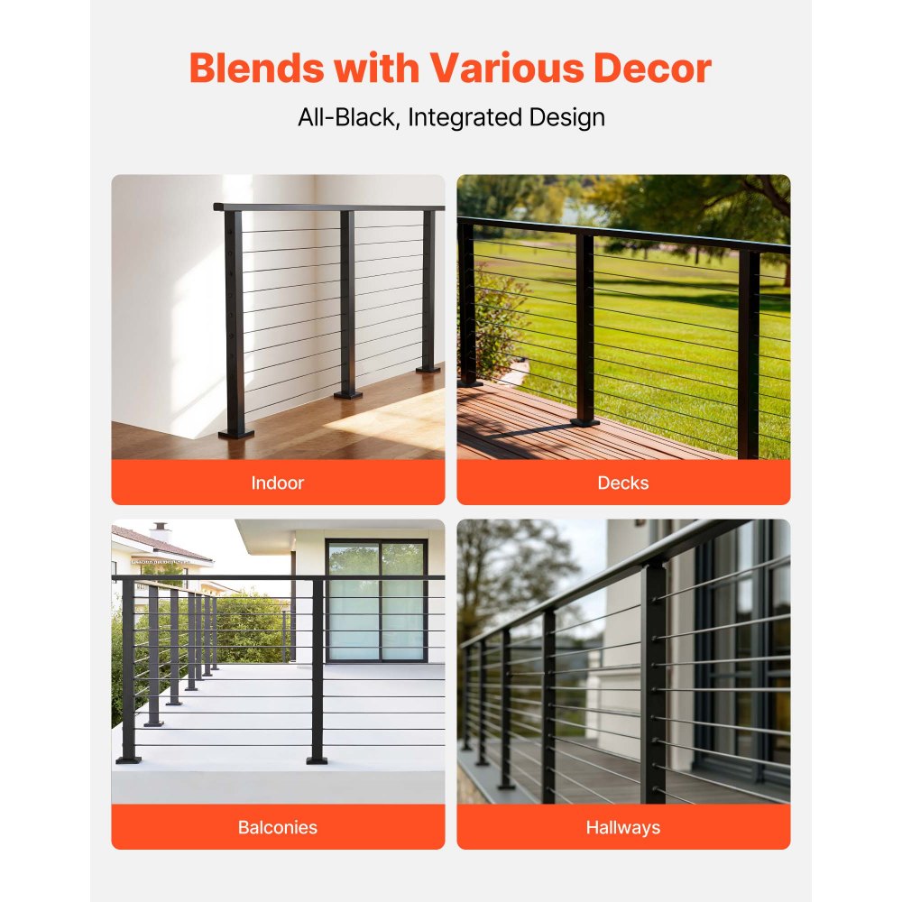 Kit de Barandilla de Cable 1981 mm con Postes y Cables, Barandilla de Acero Inoxidable Negro Mate de Exterior Interior, Pasamanos Metálico, Soporte Robusto, para Porches, Terrazas, Balcones - Construcción y estructuras