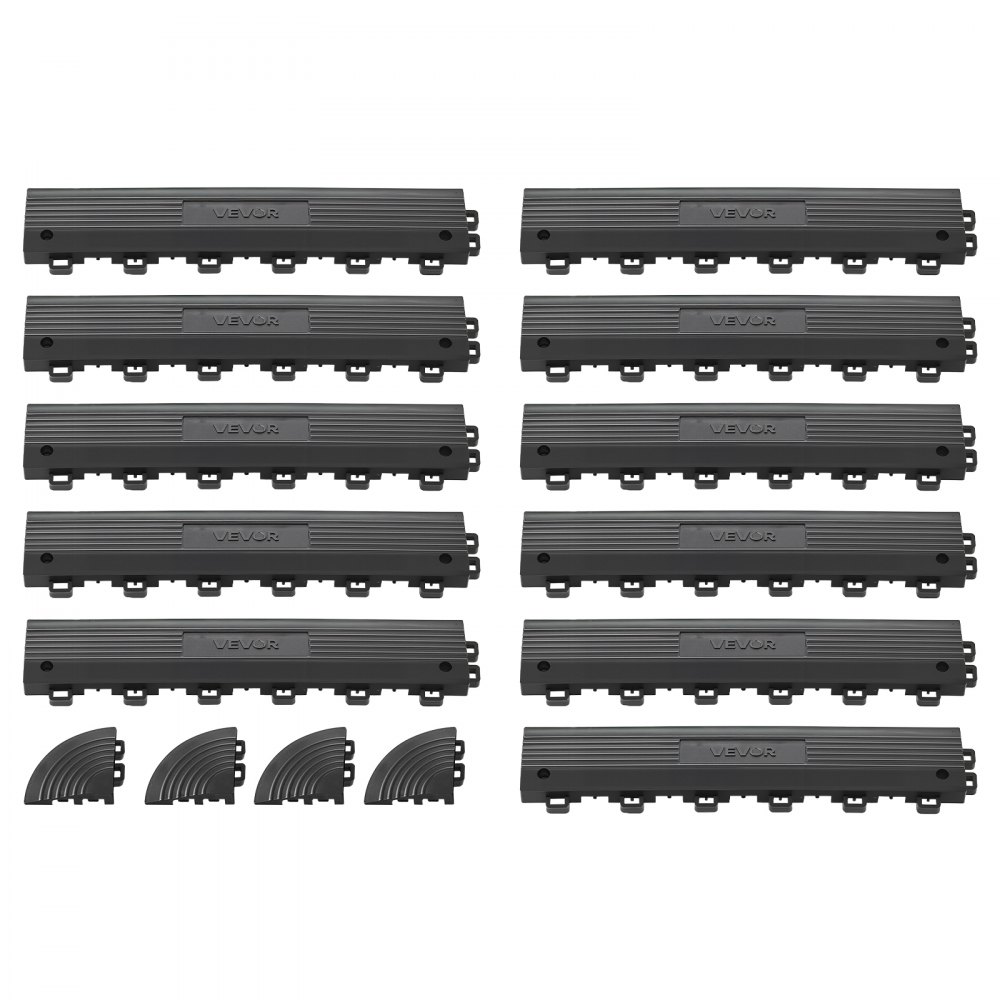 Kit de Bordes para Baldosas Entrelazadas, Paquete de 11 Piezas y 4 Esquinas, Bordes de Transición para Azulejos de Drenaje para Suelo de Garaje, Polipropileno, para Terraza Taller Piscina, Negro