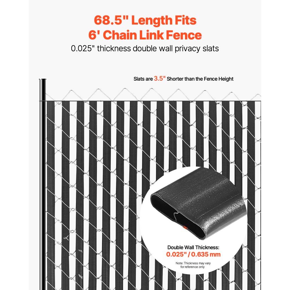 Láminas de privacidad de doble pared: Diseñadas específicamente para cercas de 6' de alto, estas láminas de privacidad con bloqueo inferior tienen aproximadamente 68,5" de largo, lo que garantiza un ajuste ideal y evita que las láminas se extiendan por encima de la parte superior de la cerca
