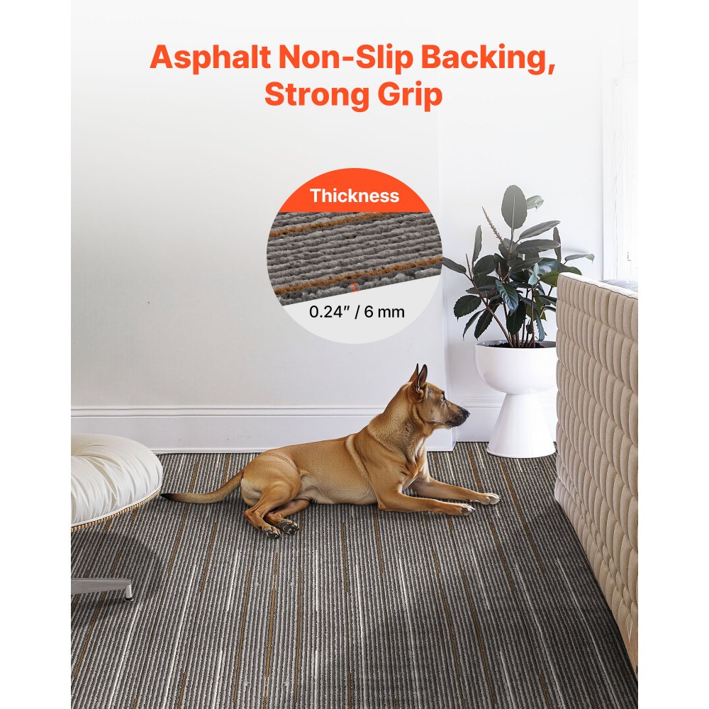 Antideslizantes y duraderas: Estas losetas de alfombra cuentan con un reverso de asfalto antideslizante que proporciona estabilidad, resistencia y resistencia a la abrasión. Son ideales para zonas de alto tránsito, como oficinas, pasillos o espacios de alquiler