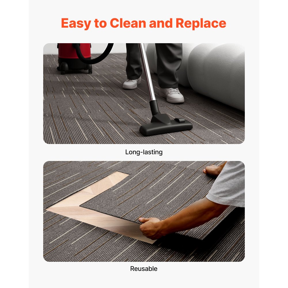 Juego de losetas de alfombra reemplazables: Este juego completo contiene 24 losetas de alfombra de 609,6 x 609,6 mm. Una vez instaladas, cubren una superficie total de 9 m². Gracias a su diseño sencillo, la instalación es rápida y sencilla, incluso para una sola persona