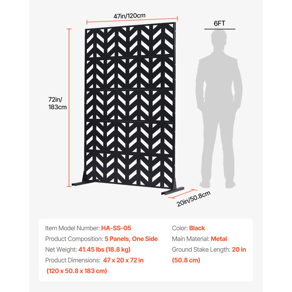 Mampara de Privacidad de Metal de 120 x 50,8 x 183 cm con Soporte, Mamparas y Paneles de Privacidad Independiente para Exteriores de 5 Paneles para Jardín, Balcón, Patio, Habitación, Negro - Construcción y estructuras