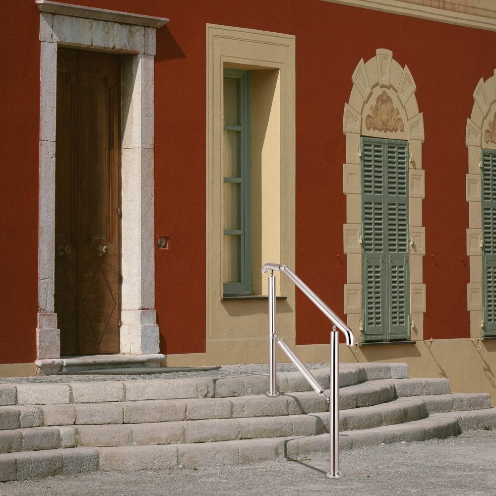 Alta capacidad de carga: Con la base de 0,12" / 3 mm de espesor y el tubo de 0,05" / 1,2 mm de espesor, este pasamanos para exteriores puede soportar hasta 441 libras / 200 kg de peso. Como una barra de apoyo confiable para su familia, brinda seguridad adicional para ancianos, niños, mujeres embarazadas, familiares discapacitados y personas después de una cirugía.