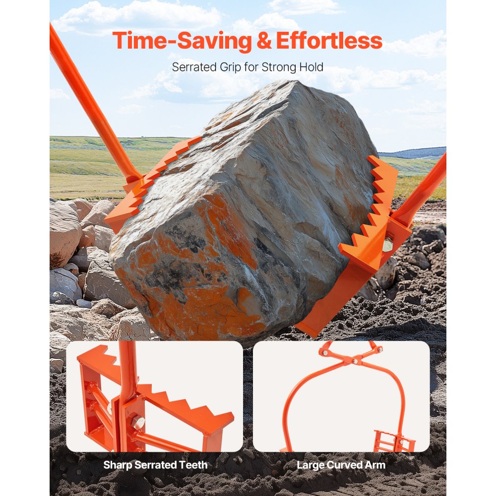 Agarre potente con garras dentadas: Diseñadas con garras afiladas y dentadas y grandes brazos curvos, las pinzas para rocas proporcionan un agarre fuerte y seguro en las piedras, lo que reduce el riesgo de resbalón y mejora la eficiencia al levantar objetos pesados.