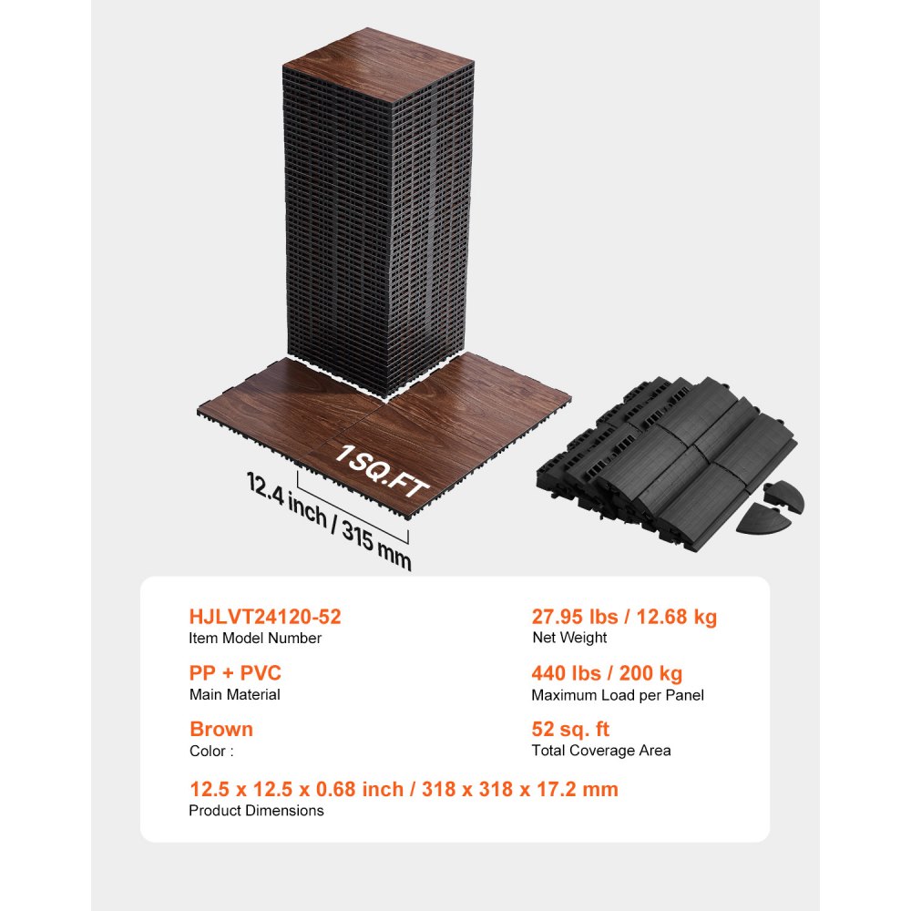 Pista de Baile Goma Entrelazadas PP y PVC, 52 Piezas Entrelazadas de 315 x 315 x 17,2 mm, Piso de Práctica de Baile Portátil con Base Acolchada(Veta de Madera de Roble, 52 Pies Cuadrados/Caja) - Construcción y estructuras