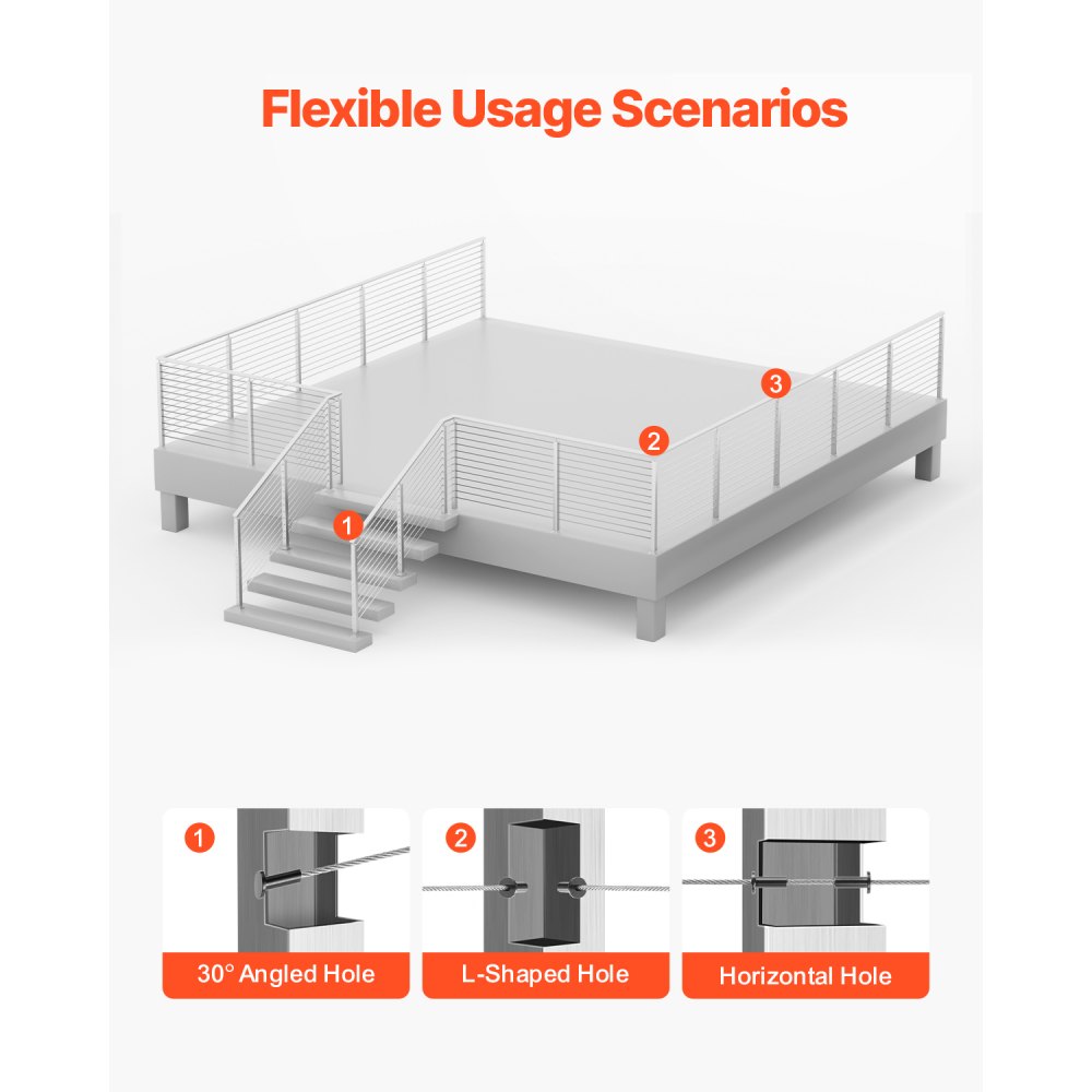 Protección para múltiples escenas: Nuestro poste de riel de cable es adecuado para protección tanto en interiores como en exteriores, incluidas terrazas, escaleras, porches, cercas, patios, balcones, jardines, edificios residenciales, oficinas comerciales, hoteles, garajes y más