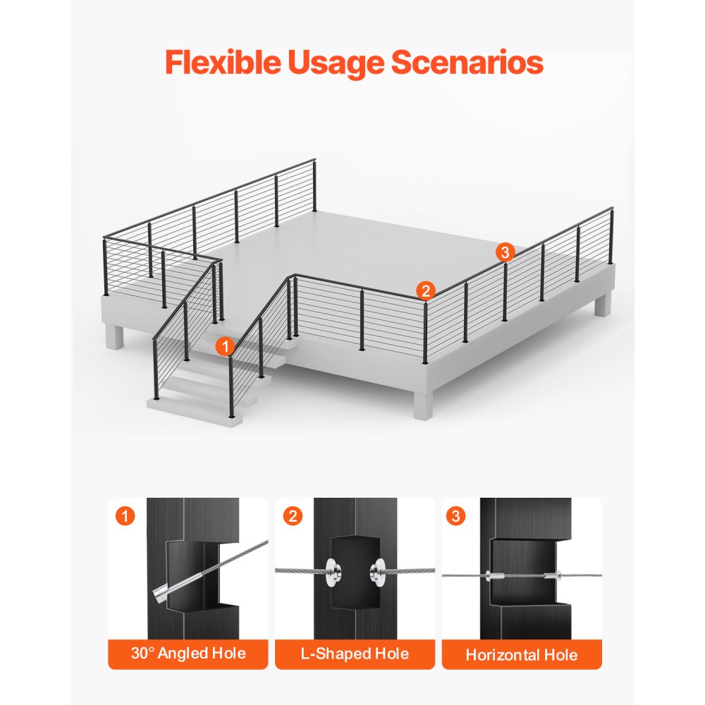 Protección para múltiples escenas: Nuestro poste de riel de cable es adecuado para protección tanto en interiores como en exteriores, incluidas terrazas, escaleras, porches, cercas, patios, balcones, jardines, edificios residenciales, oficinas comerciales, hoteles, garajes y más