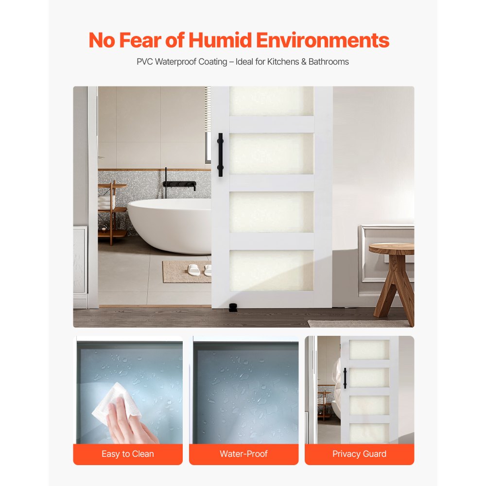 Resistente al agua y a los arañazos: Nuestra puerta de granero con kit de herrajes cuenta con un revestimiento especial de PVC impermeable, ideal para baños y cocinas. Además, resiste arañazos y rozaduras cotidianas, incluso las de las garras de los gatos