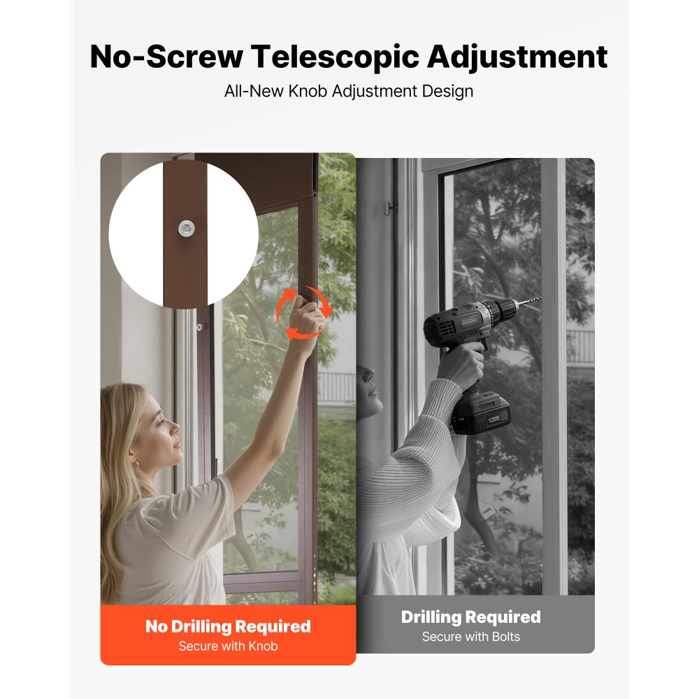 Altura ajustable: La gatera para perros para puertas corredizas de vidrio es ajustable en altura de 1927 a 2040 mm para adaptarse a diferentes tamaños de marco de puerta. Esta característica simplifica la instalación y la hace fácil de usar tanto para principiantes como para usuarios experimentados