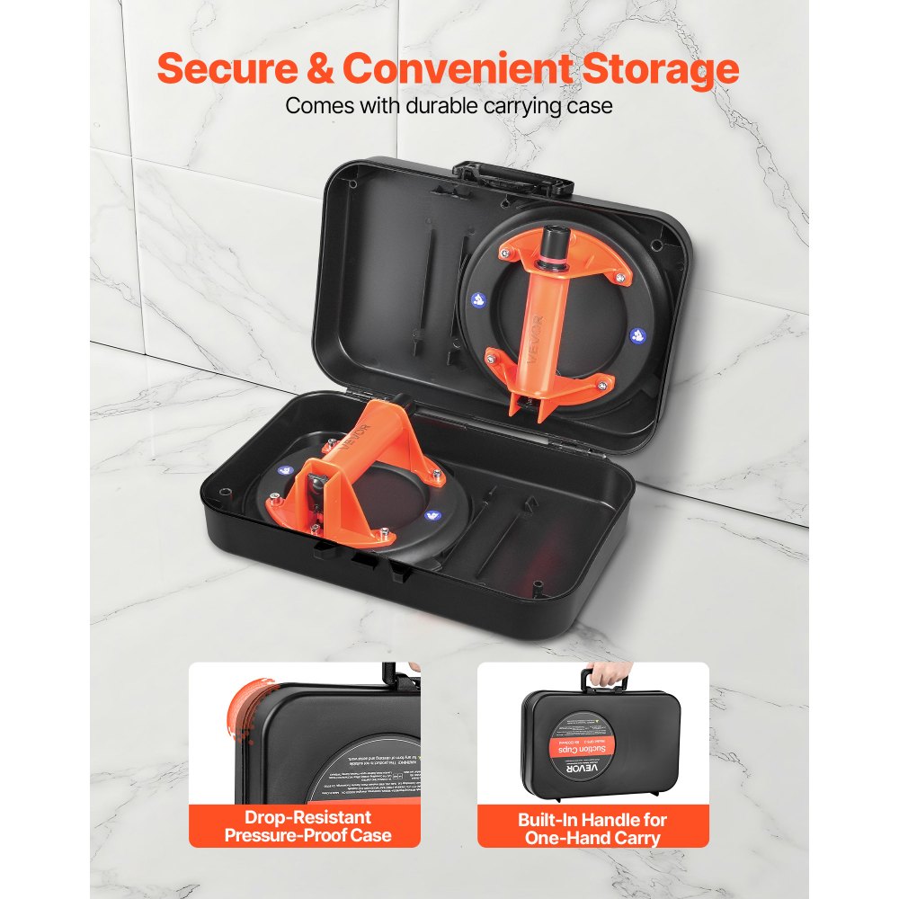 Ventosa de Vacío Manual 203 mm 2 Piezas, Ventosa de Elevación con Caja de Herramientas, Capacidad de Carga Máx. 180 kg, Mango de Plástico ABS, Elevador de Succión para Cristal Granito Azulejos