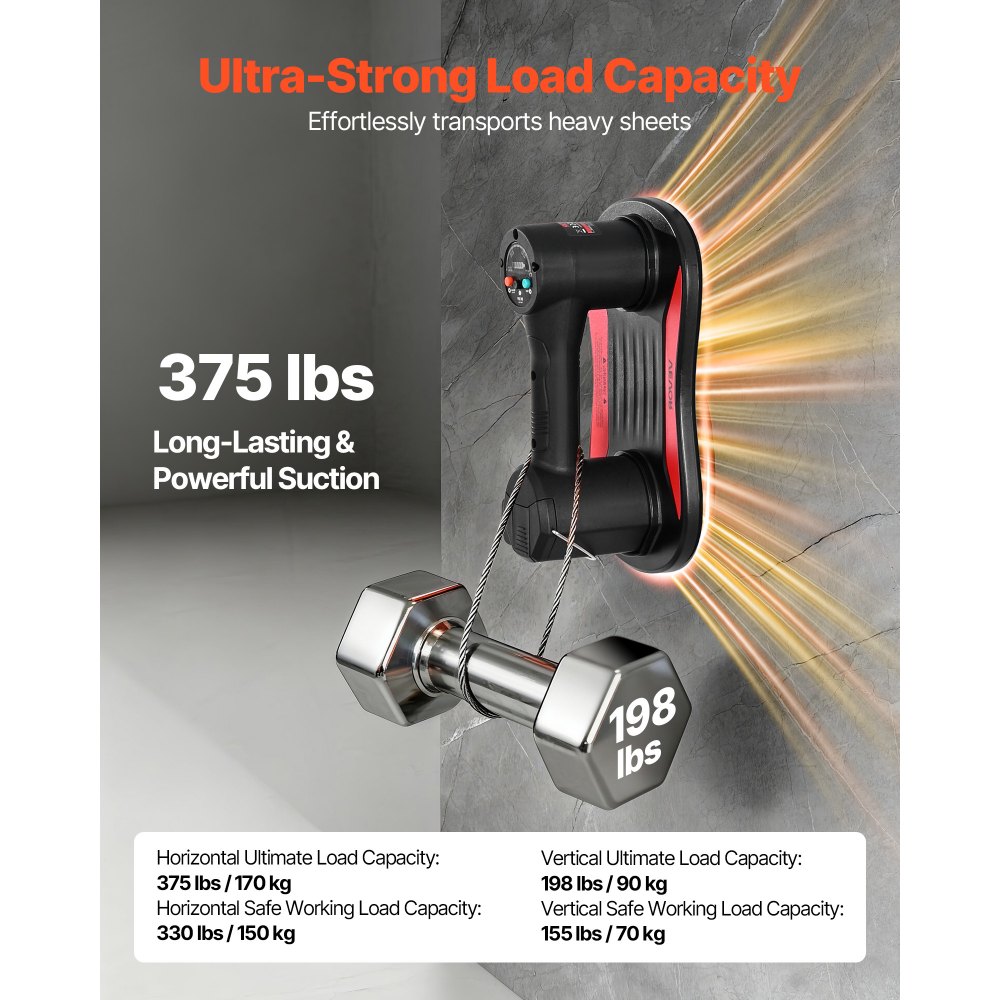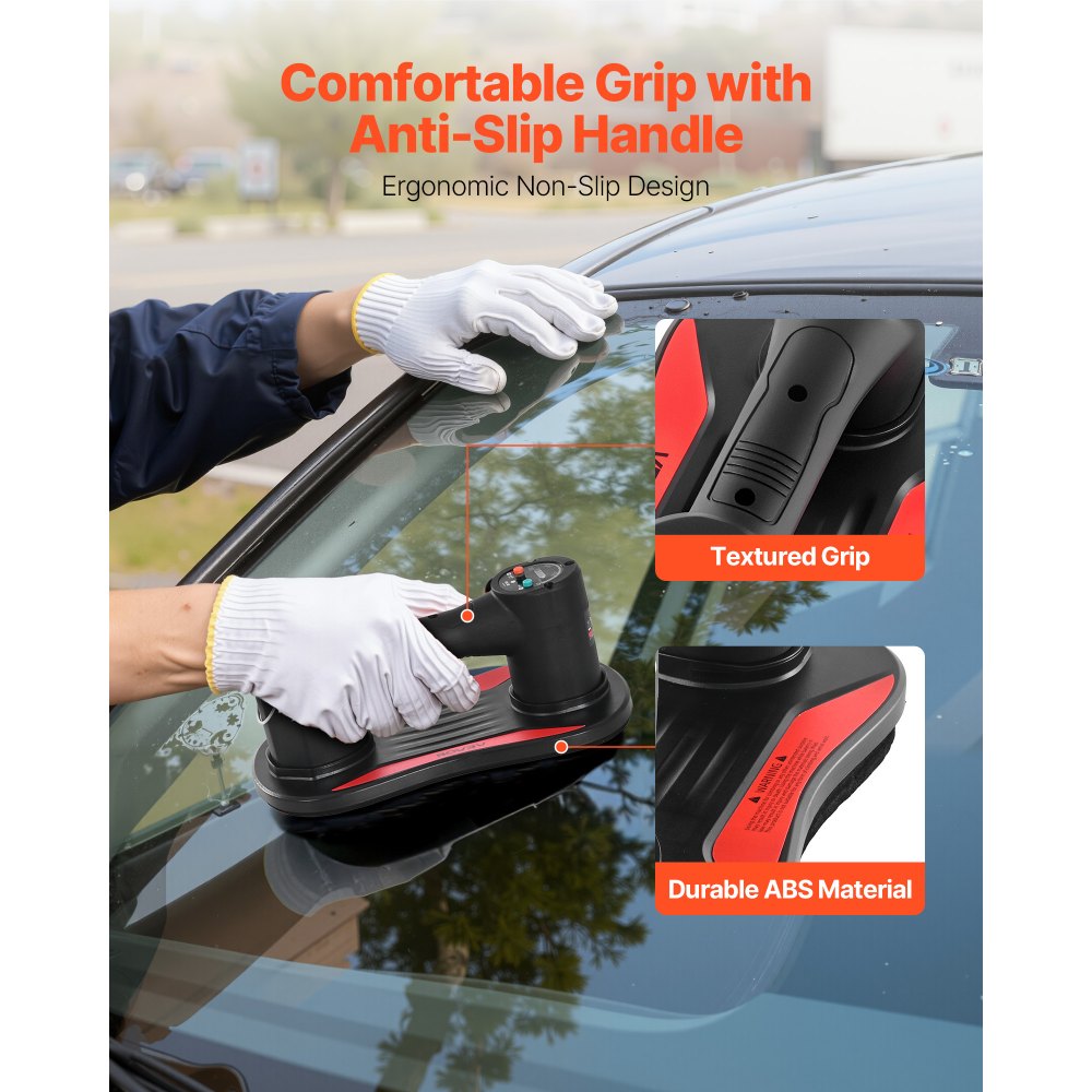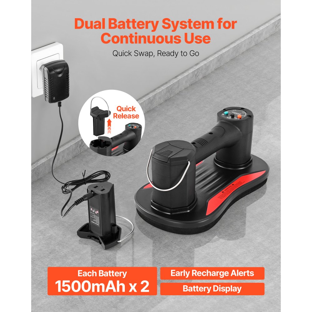 Ventosa eléctrica profesional: Esta ventosa eléctrica de vacío se bombea automáticamente para mantener el vacío en superficies planas, limpias, lisas y no porosas. Le ayuda a levantar vidrio, azulejos, plástico, paneles metálicos y piedra con confianza