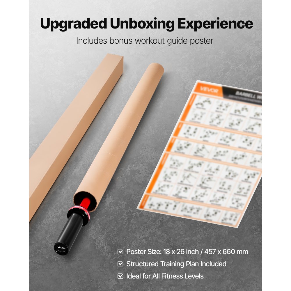 Compatible con discos de pesas estándar de 50 mm: Esta barra cuenta con un diámetro de manguito universal de 50 mm, lo que la hace totalmente compatible con discos de pesas estándar. Cuenta con un sistema de bloqueo de alta resistencia y fácil de instalar que fija los discos en su lugar y evita que se deslicen o se aflojen durante el entrenamiento. Esto mejora significativamente la seguridad y la estabilidad