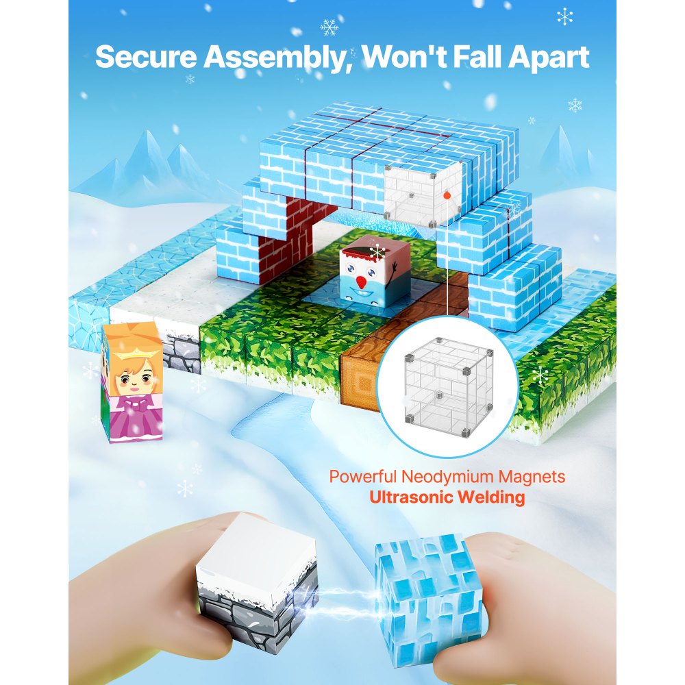 Bloques Magnéticos, Juego de 150 Piezas de Castillo Glaciar Cubos de Construcción Magnéticos, Juguetes Sensoriales STEM Montessori de Construcción Apilable para Niños de 3 Años o Más