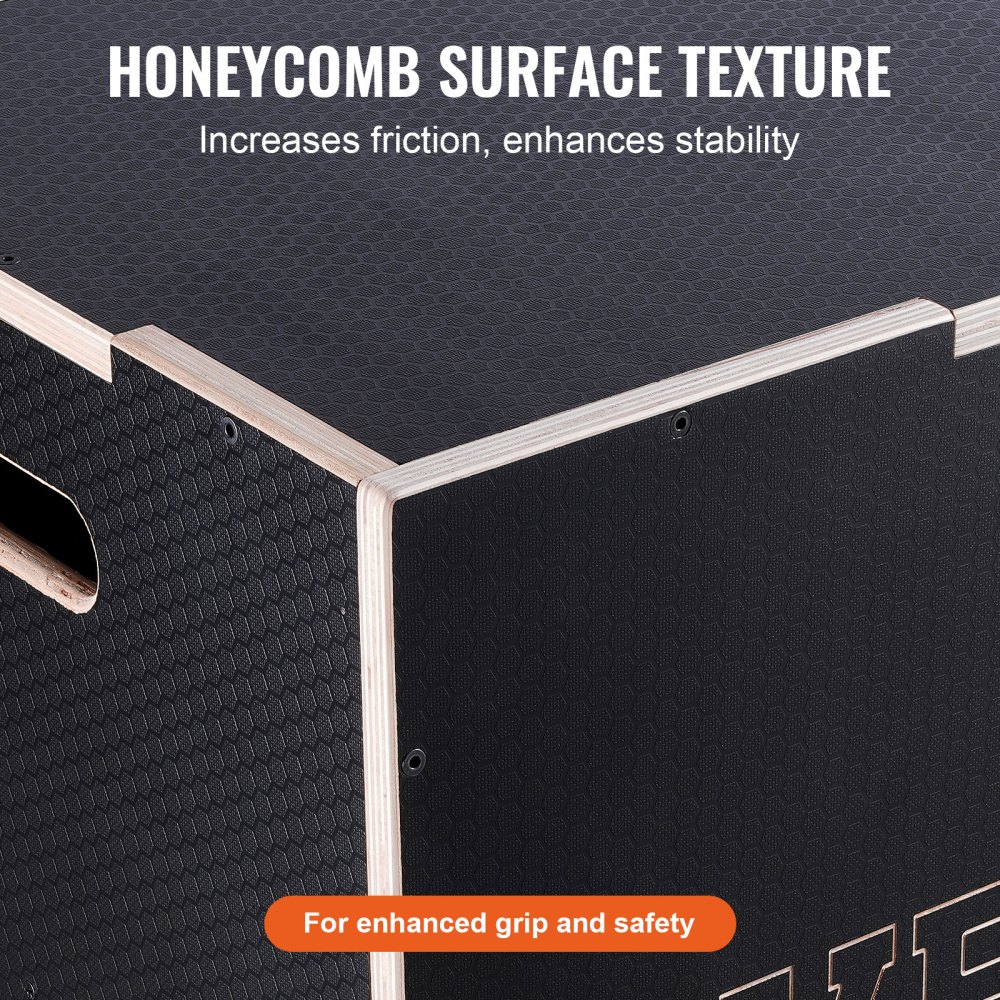 Seguro y confiable: la caja Plyo está diseñada con múltiples procesos de lijado para lograr suavidad, bordes redondeados para evitar lesiones en las manos y manijas portátiles para facilitar el movimiento. La superficie presenta un patrón de panal para mejorar la resistencia al deslizamiento, brindando estabilidad y agarre para garantizar entrenamientos seguros y efectivos.