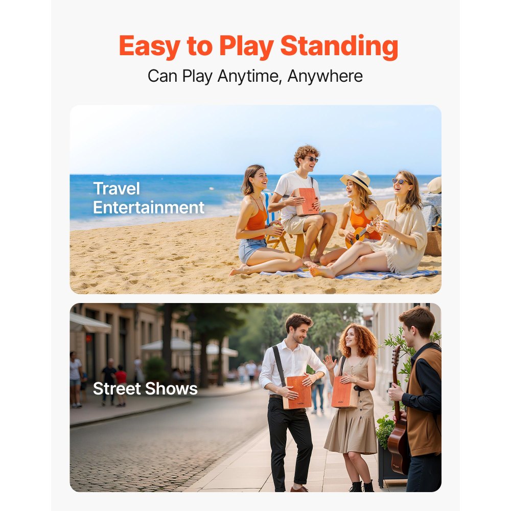 Toque ligero, sonido completo: La música empieza con un toque. Sin presión ni reglas, solo tú y tu ritmo. Este cajón de viaje es fácil de tocar y divertido. Con la bolsa de transporte incluida, puedes tocar donde y cuando quieras