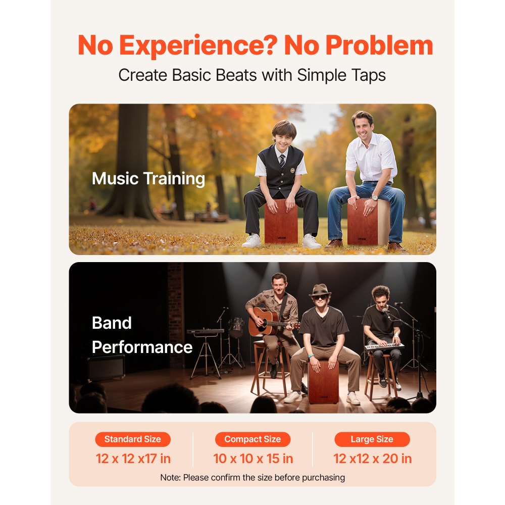 Toque ligero, sonido completo: La música empieza con un toque. Sin presión ni reglas, solo tú y tu ritmo. Este cajón de percusión de madera es fácil de tocar y divertido. Con la funda de transporte incluida, puedes tocar donde y cuando quieras