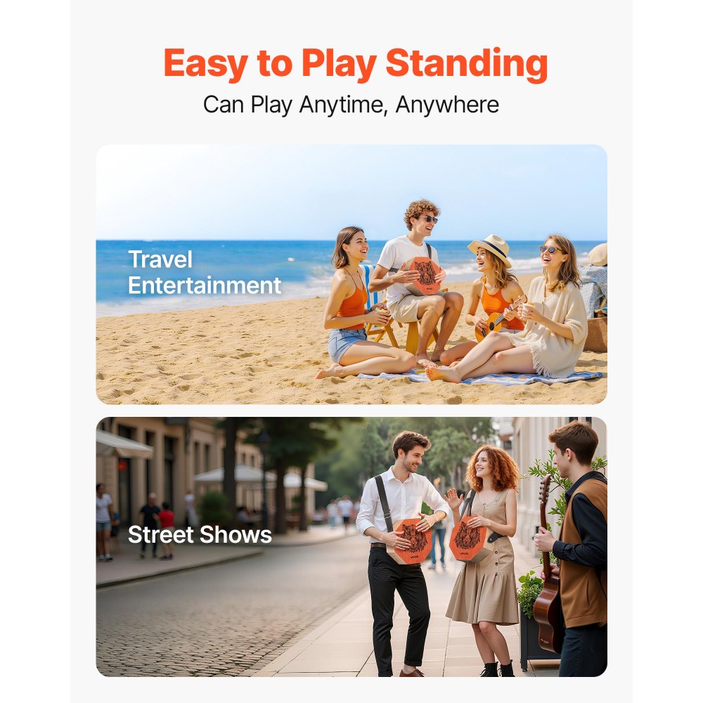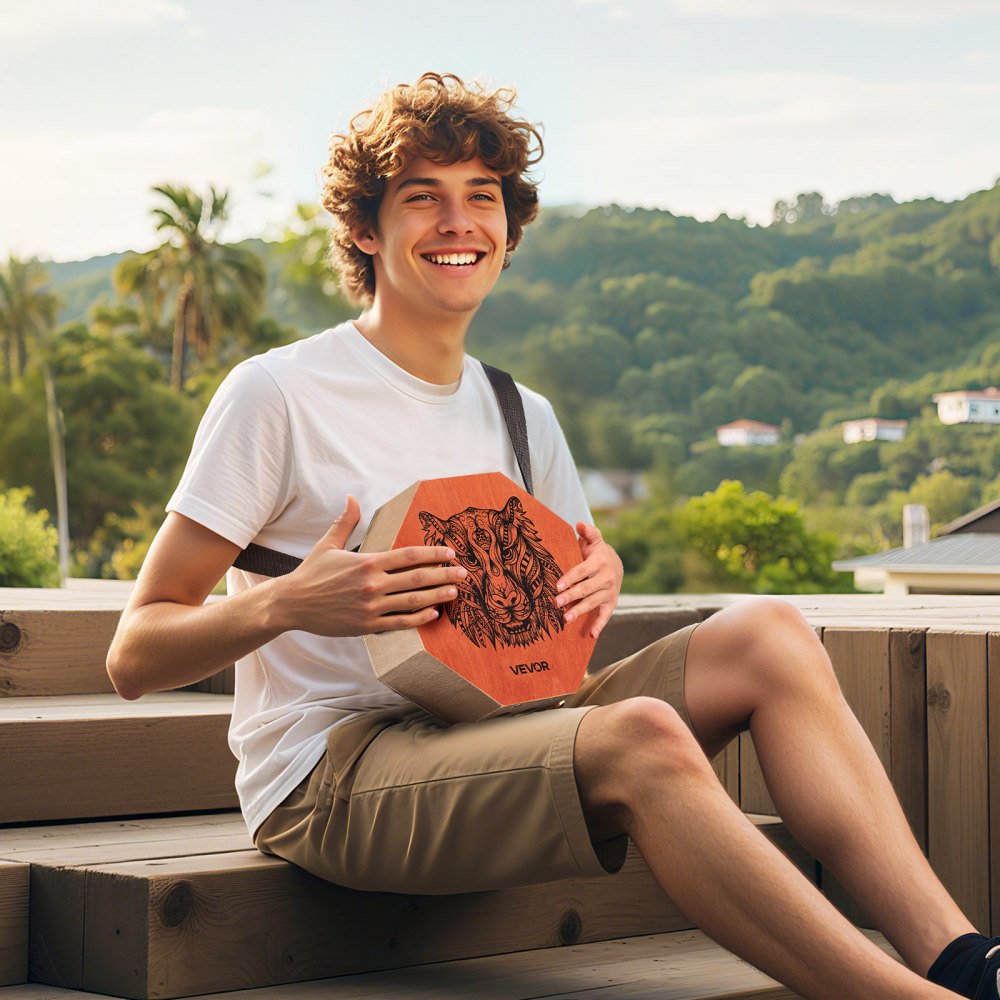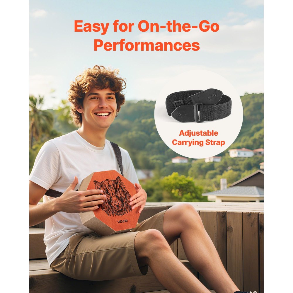 Toca donde quieras, ligero: Disfruta de la comodidad de tener las manos libres con la correa ajustable incluida. Ya sea que estés improvisando en la calle, tocando al aire libre o viajando ligero, este cajón está diseñado para acompañarte a donde te lleve el ritmo