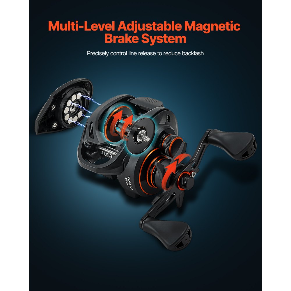 Control preciso: Gracias al sistema de frenado magnético ajustable de varias etapas, esta caña para lubina ofrece un control preciso de la velocidad de liberación de la línea, evitando enredos. Tanto si pesca peces grandes como pequeños, la caña es fácil de manejar, lo que garantiza una experiencia de pesca relajada y segura