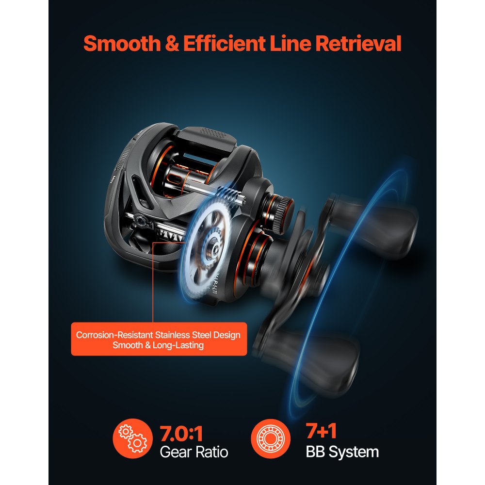 Rendimiento eficiente: Equipada con 7+1 rodamientos de bolas de alta precisión y una relación de transmisión de 7.0:1, esta caña de pescar para agua dulce garantiza un lance y una recuperación suaves y eficientes. Es ideal para la pesca de diversas especies, como la lubina negra y la lubina común, mejorando así su experiencia de pesca