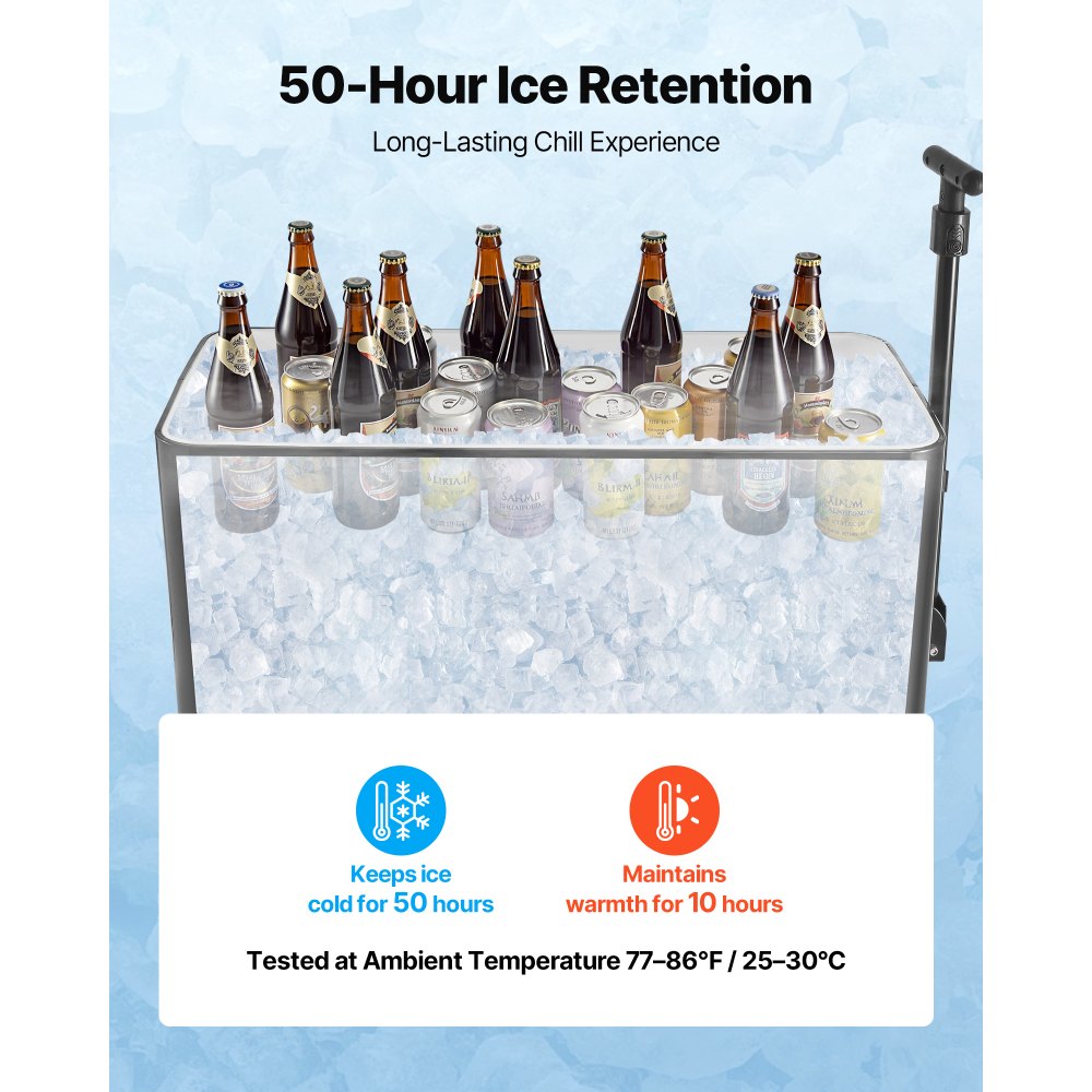 Refrigeración duradera: Nuestro carrito refrigerado cuenta con una pared interior de PP con aislamiento de espuma de PU. Disfrute de bebidas refrescantes durante todo el día en eventos al aire libre