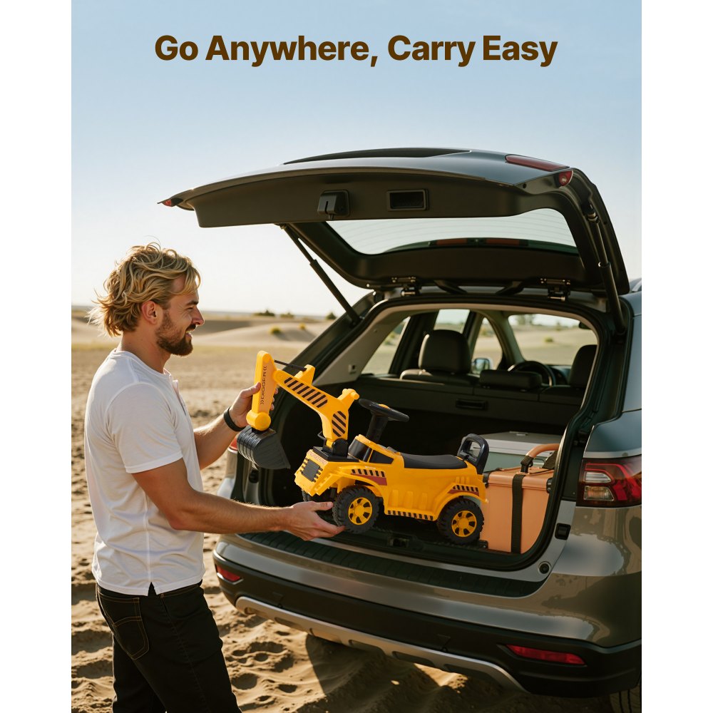Coche Correpasillos para Niños, Excavadora de Juguete de 1070 x 290 x 540 mm con Casco, Música y Pedales, Capacidad de Carga de 25 kg, Andador para Niños de 19 a 36 Meses, Amarillo
