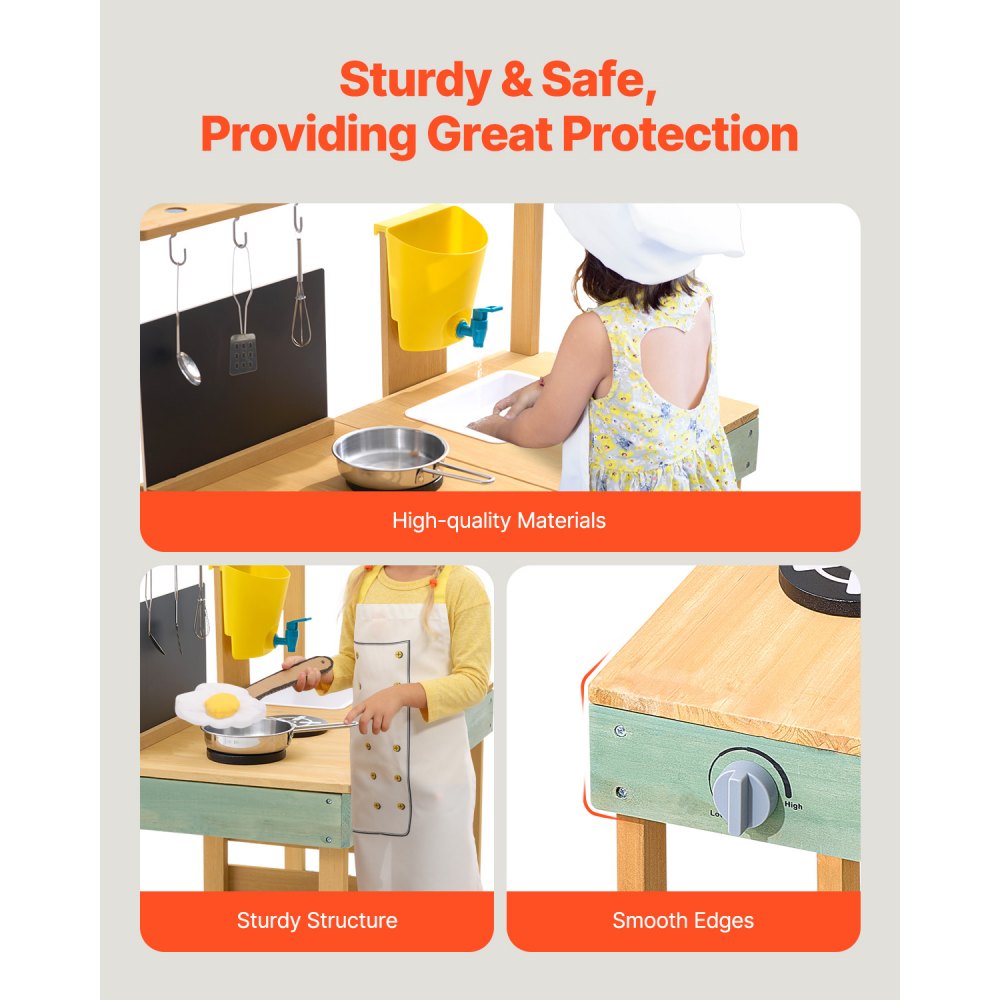 Cocina de Barro para Niños 391 x 762 x 914 mm Juego de Cocina de Madera Cocina de Juguete para Niños Cocinita Infantil de Madera para Exteriores Cocina de Juego de Simulación con Accesorios