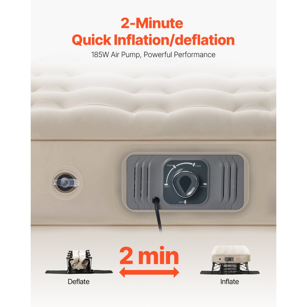 Fácil de inflar: Simplemente abra la carcasa, conecte la corriente, ajuste los parámetros y listo. El colchón de aire con estructura se inflará por completo en solo 2 minutos, lo que hace que la instalación sea rápida y sin esfuerzo