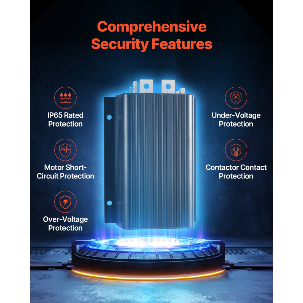Protección integral: Este controlador de carrito de golf cuenta con protección integrada contra cortocircuitos en el motor, sobretensión, subtensión, contacto del contactor y temperatura. Su grado de impermeabilidad IP65 es adecuado para condiciones climáticas adversas y entornos desafiantes, lo que garantiza un funcionamiento seguro y confiable