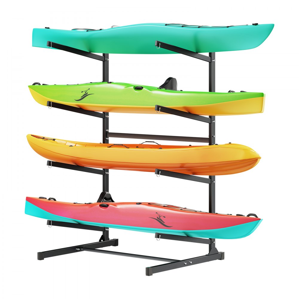Estante de Almacenamiento para 4 Kayaks, Capacidad de Carga hasta 100 kg, Estantería Independiente, con Punto de Anclaje, Uso en Interior y Exterior, para Canoa Tabla de Surf Remo Barco Pequeño - Deporte y recreación