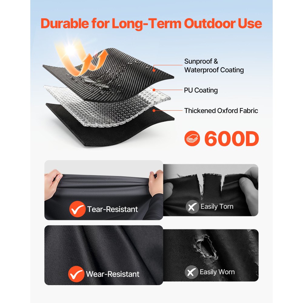 Ajuste reforzado contra el viento: Un borde inferior elástico de 360°, correas dobles contra el viento y zonas reforzadas de velcro se combinan para mantener esta funda ajustada de forma segura al chasis del carrito. Su diseño proporciona mayor estabilidad en condiciones de viento, lo que la hace ideal para estacionamientos al aire libre