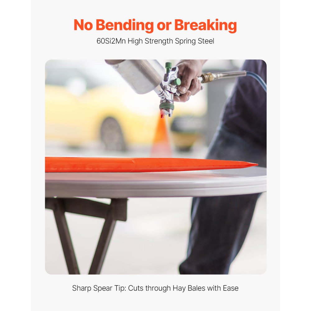 Acero para resortes premium: el eje de la horquilla para balas está hecho de material de acero para resortes de alta resistencia con recubrimiento en polvo, lo que lo hace resistente y resistente a la flexión, la rotura y la corrosión. El eje de 49" penetra sin esfuerzo en los pajares gruesos, asegurando una durabilidad a largo plazo.