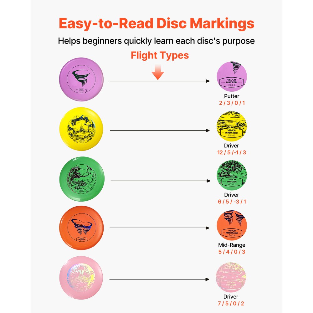 Gráficos y letras nítidas: Cada disco cuenta con diseños y textos impresos para ayudar a los principiantes a comprender rápidamente los fundamentos del disco golf. Ideal tanto para jugadores principiantes como experimentados que buscan mejorar sus habilidades