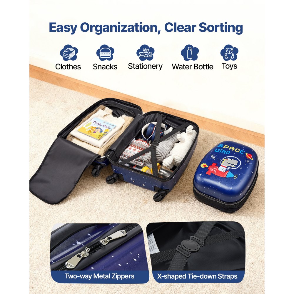 Juego de maletas de 2 piezas aprobado por aerolíneas: Este juego de maletas para niños cumple con las normas de equipaje de cabina de las aerolíneas y resulta perfecto para viajes en solitario. El juego incluye además una mochila de carcasa dura