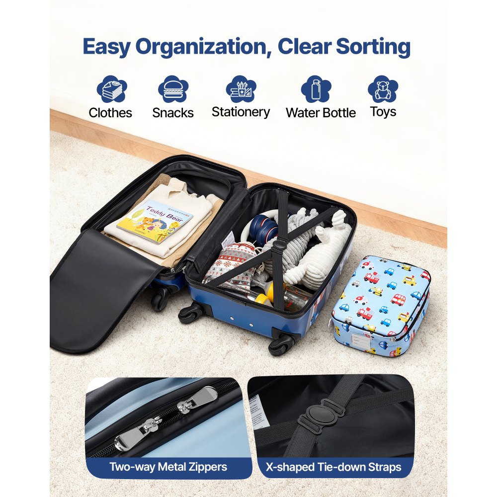 Juego de Maletas para Niños 5 Piezas, Maleta de Cabina 45,7 cm, Mochila con Cojín Cervical, Bolsa para Comida y Etiqueta de Equipaje, Camión Azul, Equipajes Infantiles para Viaje Escuela Camping