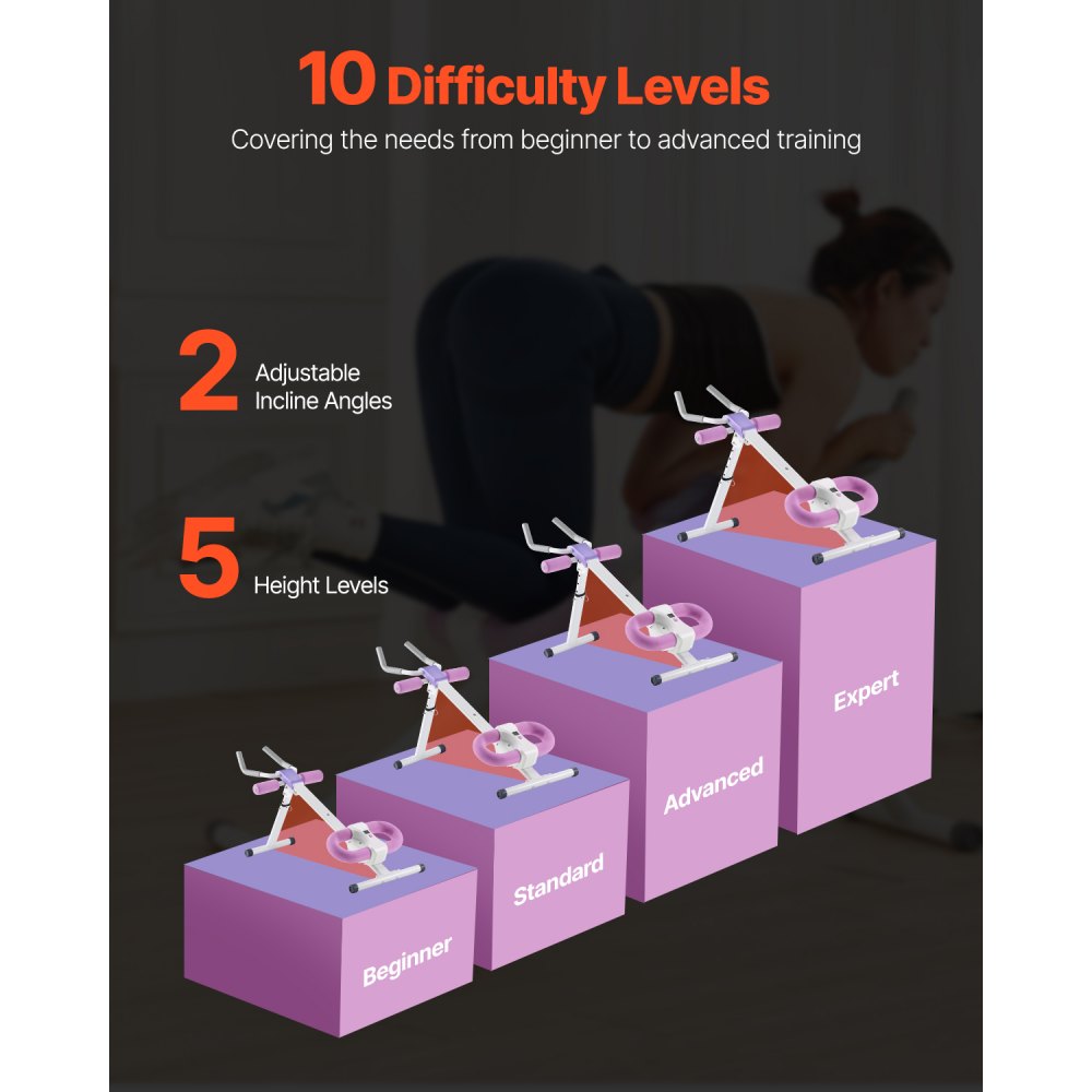 Niveles de dificultad ajustables: Con 2 ángulos de inclinación y 5 configuraciones de altura, el entrenador de fuerza en casa ofrece un total de 10 niveles de dificultad, satisfaciendo las necesidades tanto de principiantes como de entrenamiento avanzado, proporcionando continuamente una intensidad variable para los abdominales mientras se adapta a diferentes alturas y niveles de fuerza.