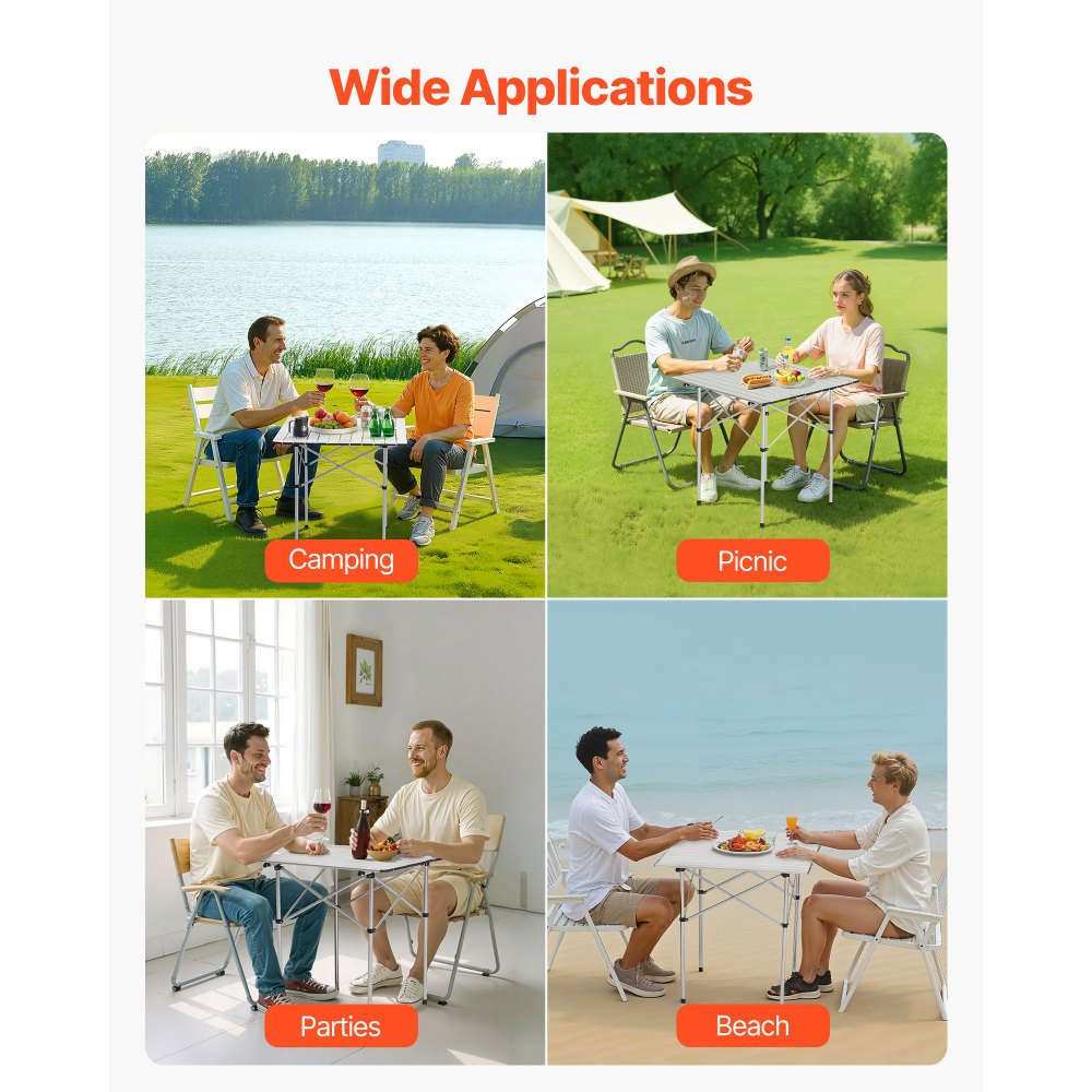 Ajuste de altura: La mesa de camping tiene un tablero de 70 cm de ancho con capacidad para 2 a 4 adultos. Su estructura ligera y plegado compacto facilitan su transporte a parques, conciertos o fiestas