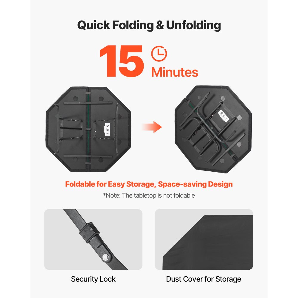 Mesa de póker plegable y espaciosa: Nuestra mesa de póker plegable octogonal de 1220 mm tiene capacidad para 8 jugadores, ofreciendo amplio espacio para cada uno. Ideal para blackjack, Texas Hold'em y otros juegos de cartas, ofrece una experiencia de juego al estilo Las Vegas en tu hogar