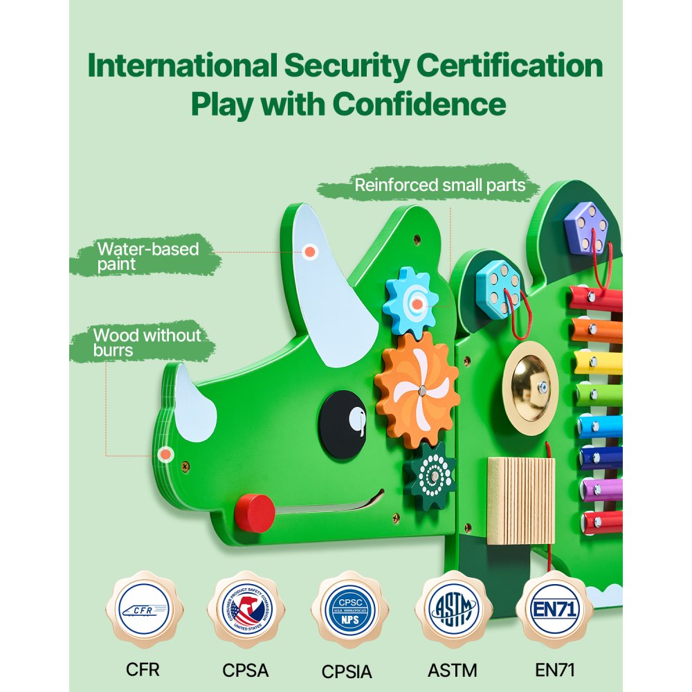 La seguridad es lo primero: Este tablero de actividades para montar en la pared, fabricado con MDF y pinturas a base de agua, cumple con los estándares de seguridad internacionales, lo que garantiza que no contiene bordes afilados ni productos químicos nocivos. Las conexiones resistentes mantienen todo seguro, lo que brinda tranquilidad a los padres mientras los niños juegan y exploran