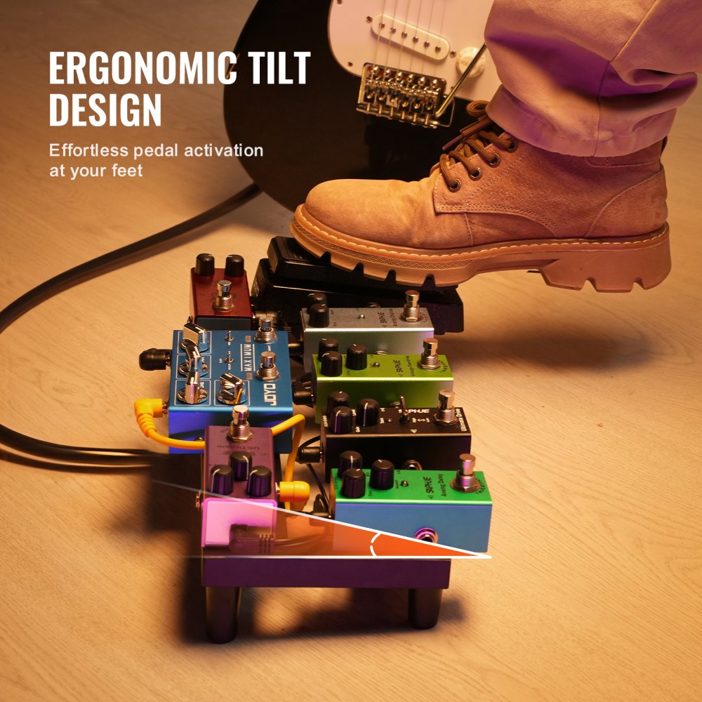 Diseño de inclinación ergonómico: nuestra pedalera de guitarra presenta un diseño de inclinación ergonómico, lo que garantiza que el uso prolongado no forzará la espalda y facilita el pedaleo. Perfecto tanto para creativos solistas como para bandas profesionales, mejora tu experiencia de interpretación con cada sesión. Además, con patas antideslizantes adicionales en la parte inferior, se mantiene seguro en su lugar durante el uso, evitando movimientos no deseados o rayones en su bolsa de almacenamiento cuando la guarda.