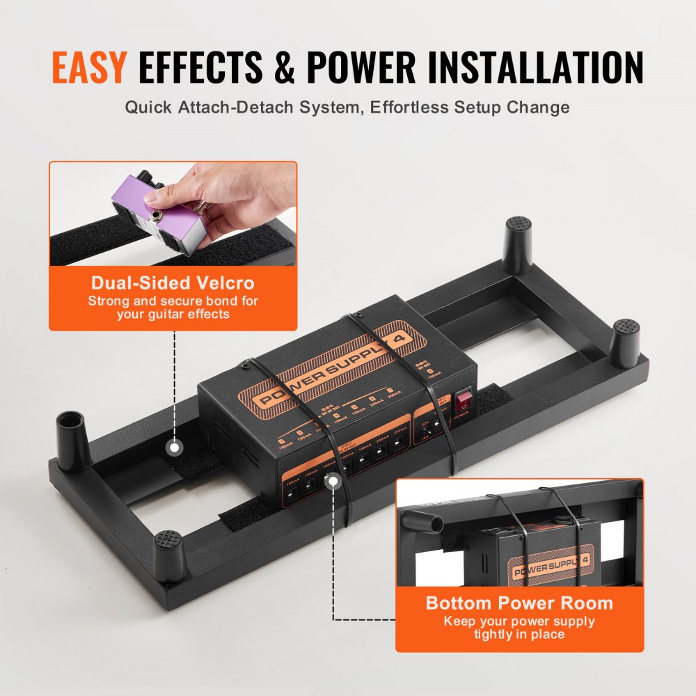 Velcro de alta calidad, adhesivo fuerte: nuestra pedalera de guitarra está equipada con velcro de alta calidad, que se adhiere de forma segura y se desprende fácilmente. Con su compartimento inferior para la fuente de alimentación y la correa incluida, su fuente de alimentación permanece segura en su lugar. Además, hemos añadido un velcro de 5 cm de ancho preinstalado en la pedalera, lo que te permite personalizarlo fácilmente y fijarlo a la parte trasera del pedal para un uso sin esfuerzo.