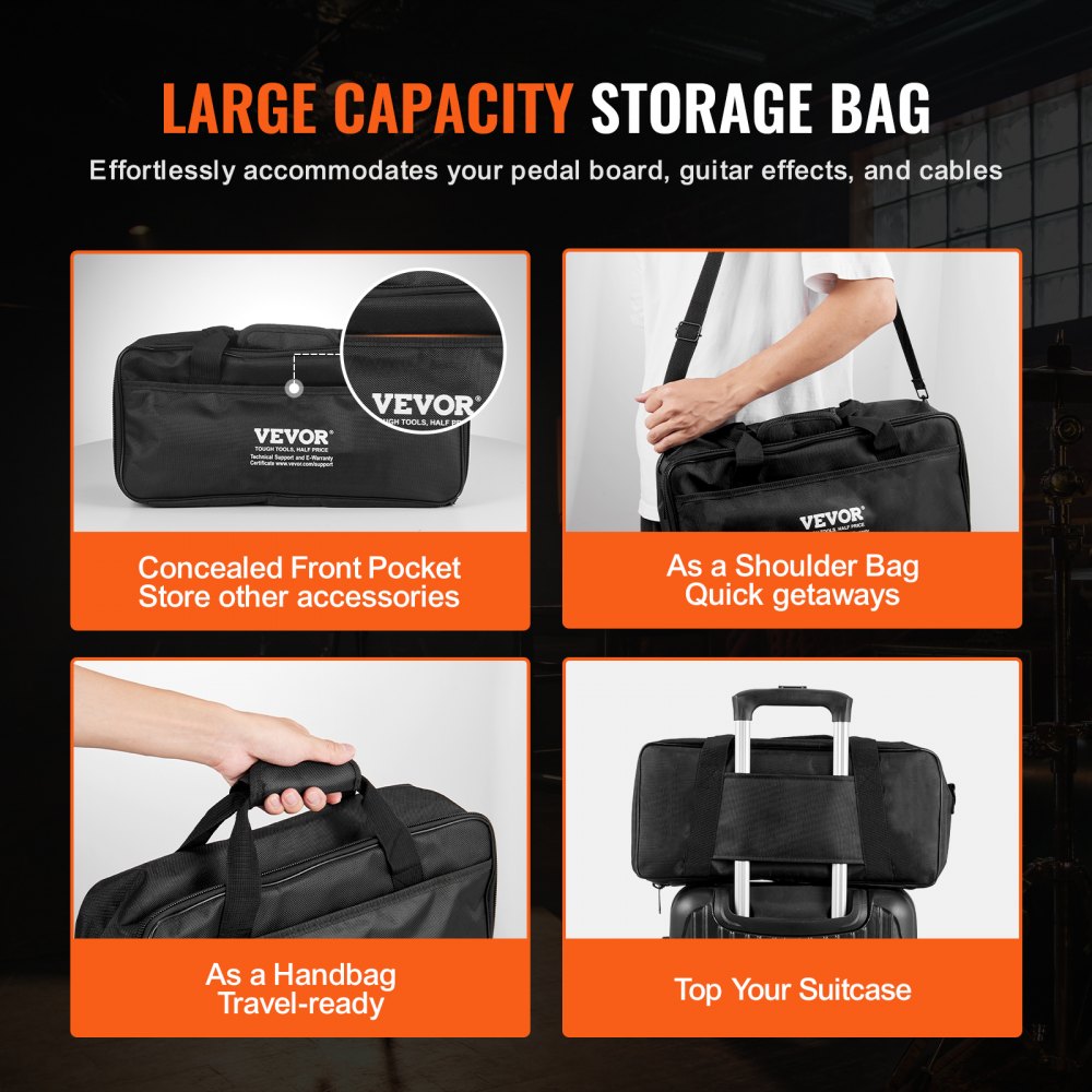 Bolsa de almacenamiento de gran capacidad: diseñada para un fácil transporte, nuestra pedalera de guitarra viene con una bolsa de almacenamiento de gran capacidad dedicada que también funciona como bolso de mano o bandolera, e incluso se puede sujetar de forma segura a su equipaje. Incluso después de colocar la pedalera en el interior, todavía queda mucho espacio. En el interior encontrarás correas seguras para guardar la pedalera. El exterior cuenta con bolsillos laterales perfectos para guardar accesorios adicionales. ¡Disfruta de una comodidad inigualable mientras viajas!
