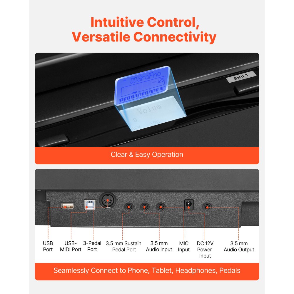 Piano Digital 88 Teclas, con Modo de Teclado Dual y Altavoces, Soporte en Forma de X, Pedal de Sostenido, Función de Grabación, 280 Tonos, Conexión Inalámbrica, para Principiantes, Negro - Deporte y recreación