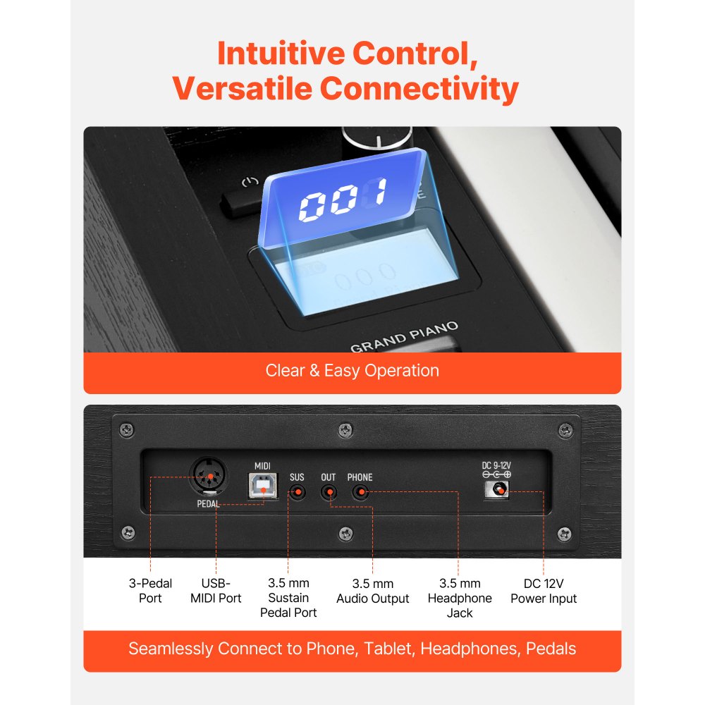 Tacto y sonido realistas: Con un teclado de 88 teclas contrapesadas con tres niveles de sensibilidad, este piano digital de 88 teclas contrapesadas reproduce fielmente la sensación de un piano acústico. Ideal para principiantes y músicos ocasionales