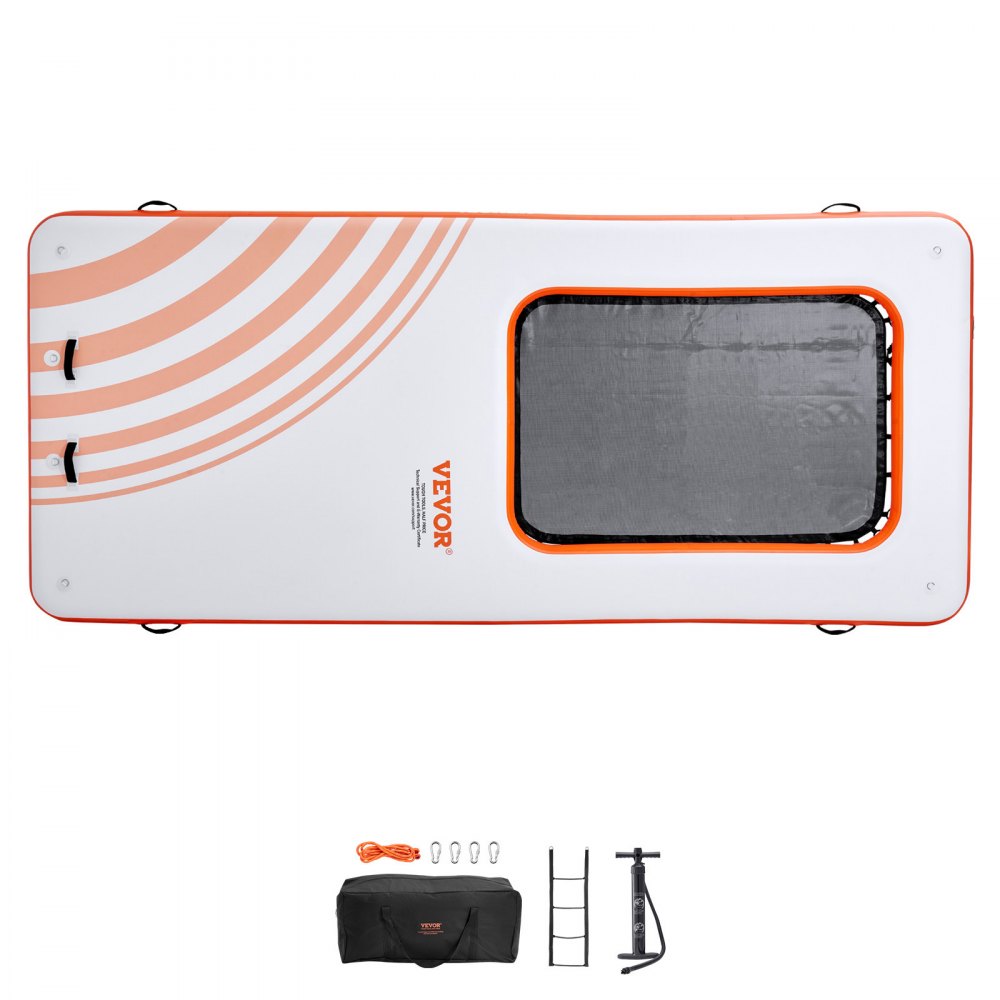 Plataforma de Muelle Inflable 4,57 x 1,98 m con Trampolín de Piscina de Malla Central 1,21 x 1,82 m Estera de Agua Antideslizante Bolsa Portátil Escalera Extraíble para Relajarse Piscina Playa - Deporte y recreación
