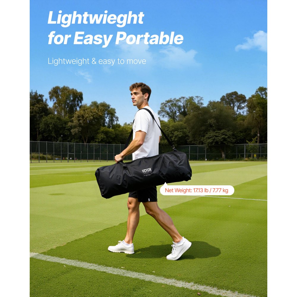 Diseño plegable: almacenamiento conveniente: esta portería de lacrosse viene con una bolsa cuadrada de tela Oxford negra 600D, que permite un plegado rápido en un tamaño compacto, lo que facilita el almacenamiento. Esto lo hace conveniente para una fácil movilidad en campos deportivos cubiertos, áreas de juego, parques o su patio trasero.
