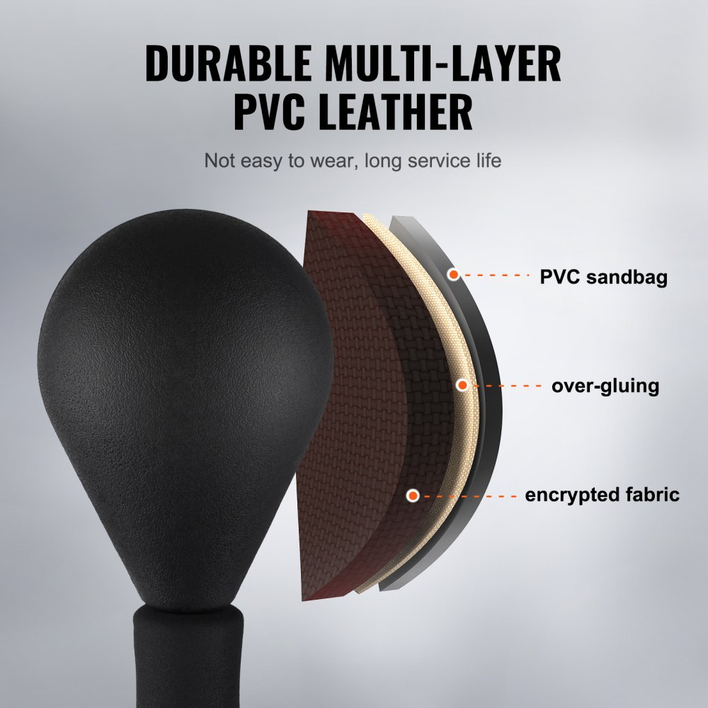 Rebote rápido: Nuestro saco de boxeo ha sido especialmente desarrollado para un uso óptimo y seguro y está equipado con resortes robustos y duraderos para que el saco de boxeo con resorte rebote a su posición original después de cada golpe.