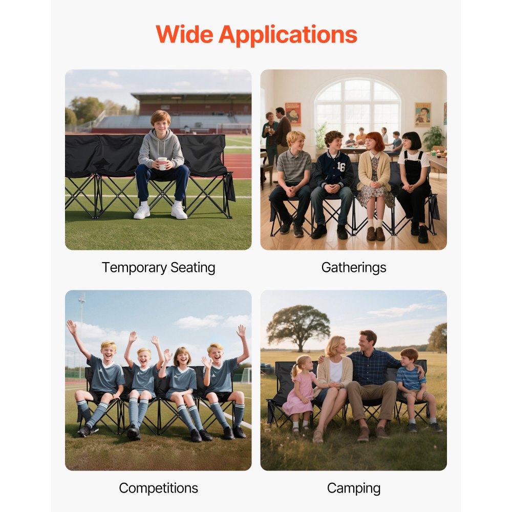 Amplia aplicación: Este banco plegable portátil es apto para todas las edades. Ofrece un lugar de descanso para atletas y jugadores durante eventos deportivos como fútbol o baloncesto, y también es ideal para actividades al aire libre, viajes y acampadas