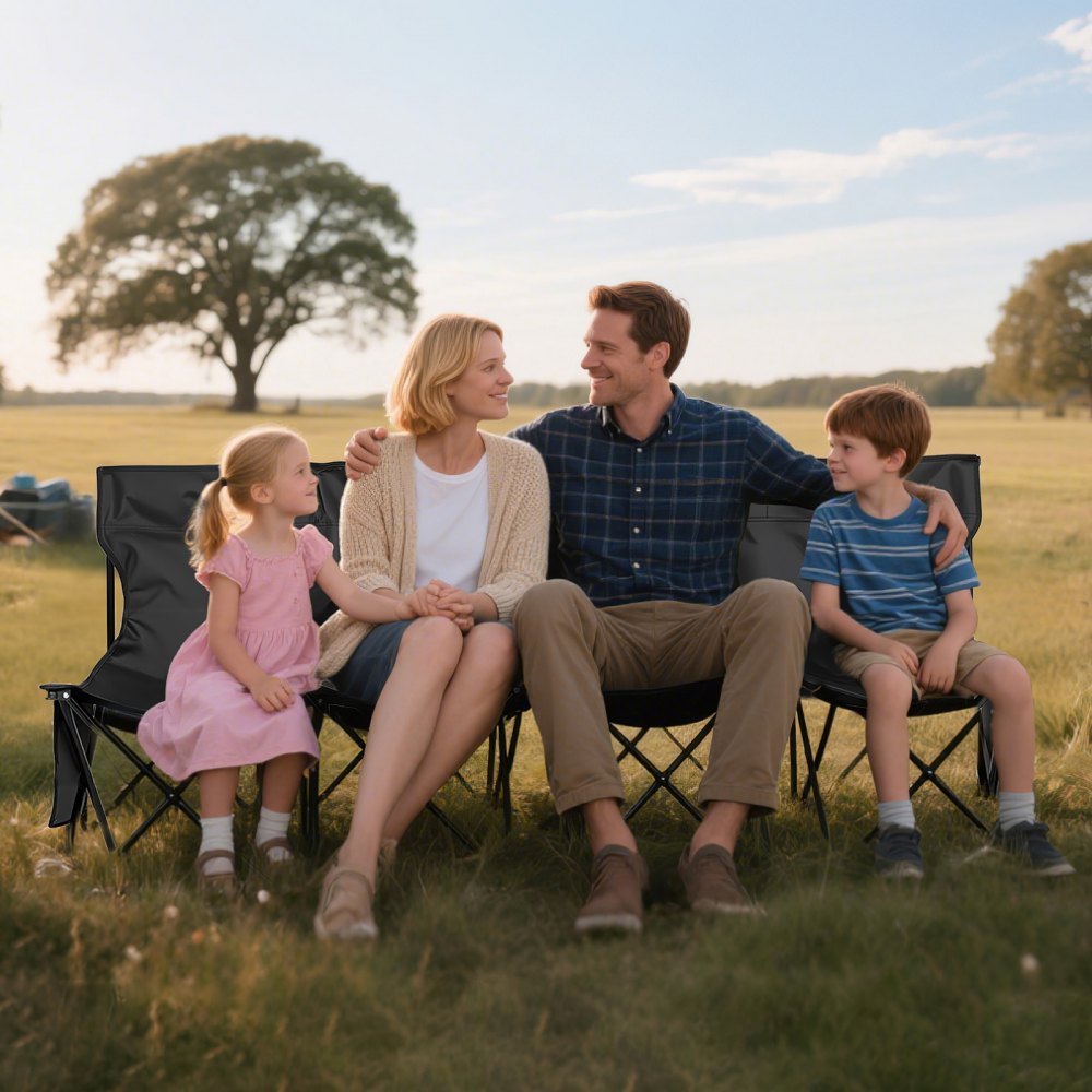 Asientos cómodos: Esta silla plegable de 4 plazas (1610 x 450 x 820 mm) es extremadamente portátil y ligero, con respaldo y asiento extragrande para mayor comodidad. No requiere montaje: simplemente abre la caja y listo