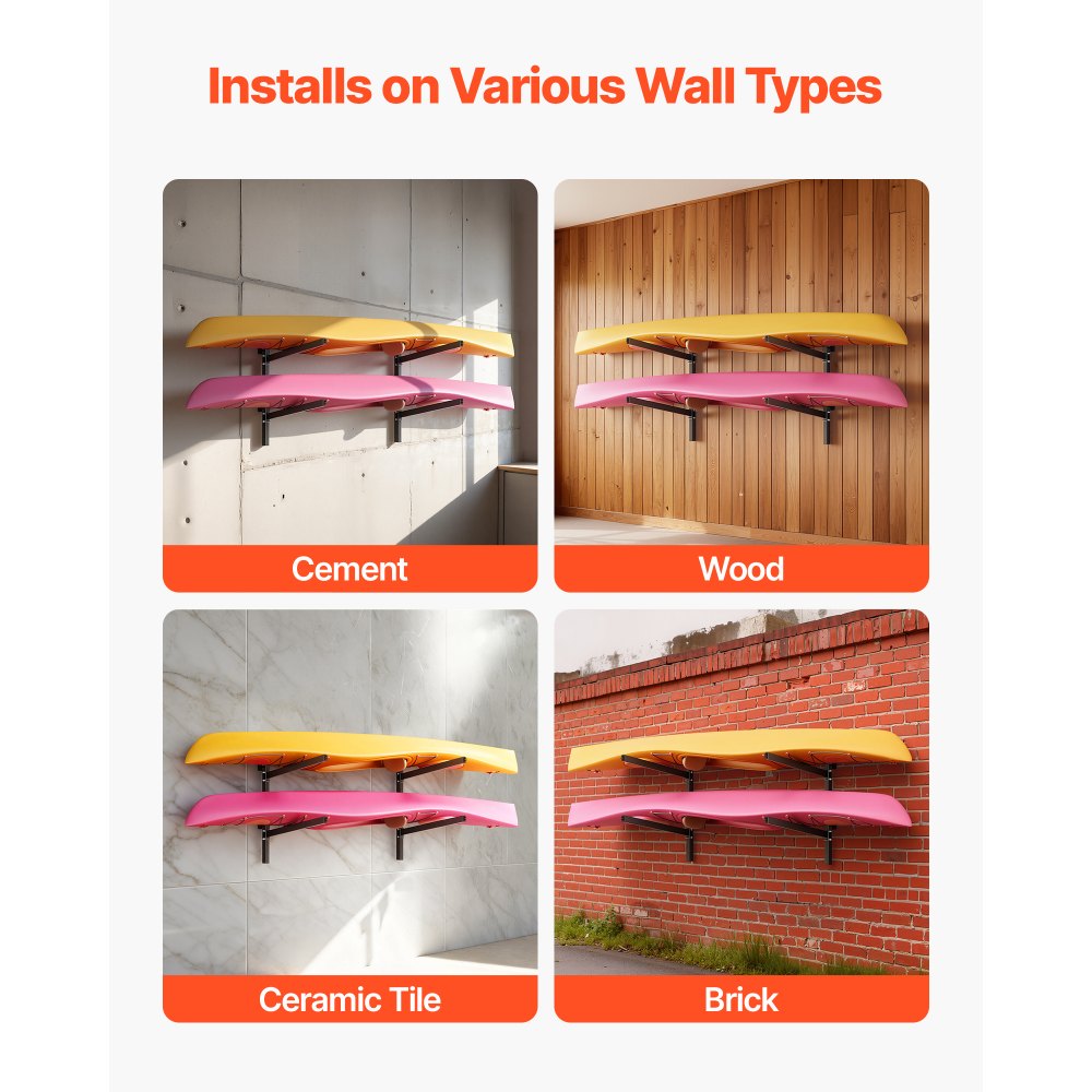Amplia aplicación:Se puede colocar este soporte para kayak en garajes, cobertizos para embarcaciones, muelles, tiendas de alquiler o en paredes exteriores. Ahorra espacio de almacenamiento y mantiene su espacio limpio, ordenado y organizado